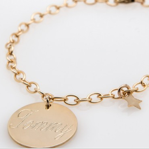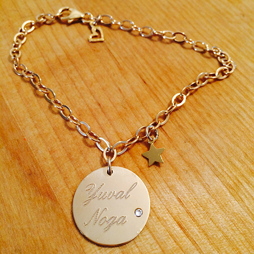 צמיד עם תליון עגול בקוטר של 19 מ"מ עם חריטה לבחירתכם.